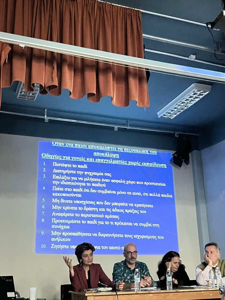 Η διημερίδα ολοκληρώθηκε με το απογευματινό σεμινάριο «Όψεις της βίας προς και από τα παιδιά. Πρόληψη και αντιμετώπιση». Η συνάντηση άνοιξε με καλωσόρισμα του Ιωσήφ Βιβιλάκη εκ μέρους του Φεστιβάλ και της διευθύντριας του Γυμνασίου Αθηνάς Ζαφειροπούλου. Την εκδήλωση τίμησε η αντιδήμαρχος παιδείας και πολιτισμού Σοφίας Βότση η οποία χαιρέτισε στην έναρξη του σεμιναρίου. Στη συνέχεια απηύθυναν χαιρετισμούς ο σύμβουλος Βασίλης Μάστορης και οι εκπρόσωποι γονέων-κηδεμόνων Αναστασία Πουλημένου και Παναγιώτης Αγγελόπουλος.