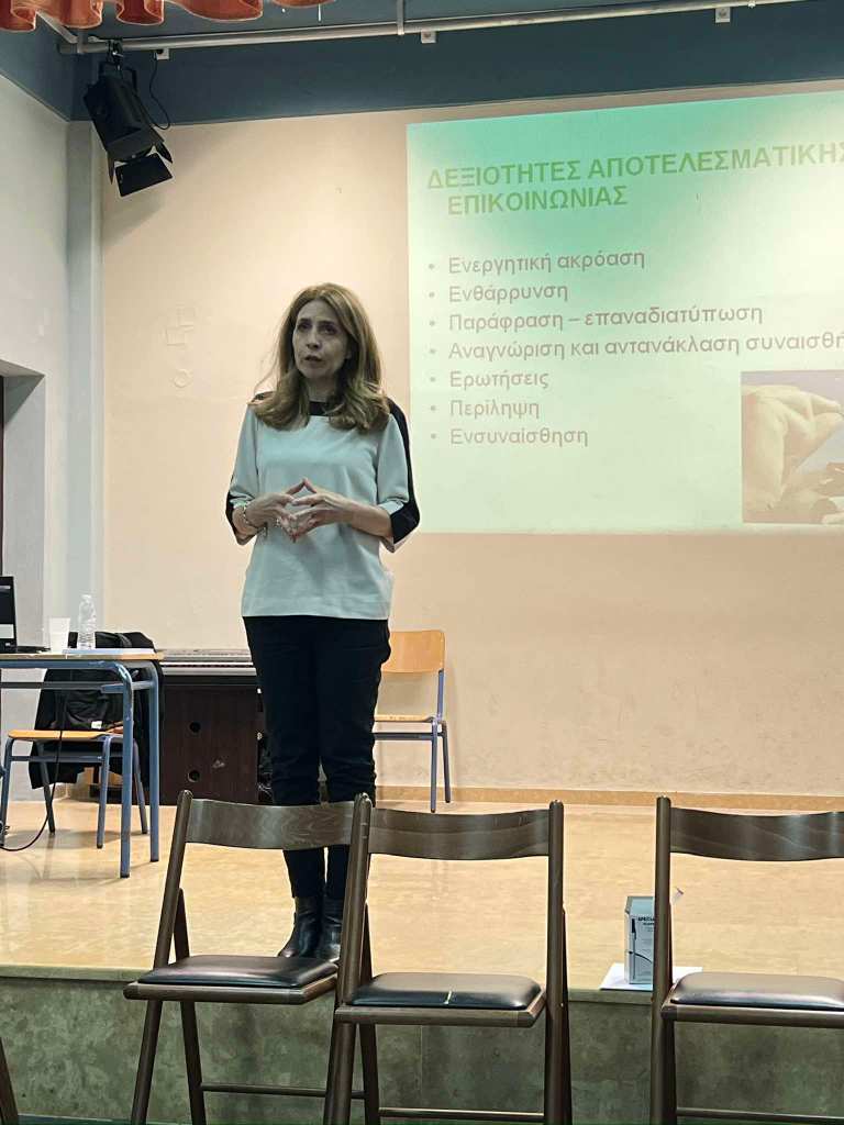 Το Σάββατο 15 Μαρτίου το πρωί στο Γυμνάσιο η Νάγια Μποέμη εμψύχωσε ένα εργαστήριο με θέμα τους διαύλους επικοινωνίας μεταξύ μαθητών-καθηγητών-δασκάλων. Όσοι συμμετείχαμε εργαστήκαμε πάνω στους τρόπους επικοινωνίας είτε λεκτικά είτε σωματικά και πώς διαφοροποιούνται για την καλύτερη μετάδοση του μηνύματος.